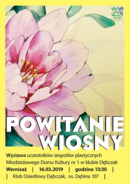 Wernisaż odbędzie się 16.03.2019 o godzinie 13:30 w Klubie Osiedlowym "Dębczak".