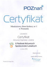 Olimpiada Sportowa pod hasłem ARTYSTYCZNI NA SPORTOWO odbyła się 2.06.2015.Była podsumowaniem działalności organizowanych w placówce w roku szkolnym 2014/15 Warsztatów Artystycznych dla przedszkoli i szkół podstawowych miasta Poznania.Impreza rozpoczęła się podpaleniem znicza olimpijsiego i odśpiewaniem Hymnu Polski. Następnie dzieci brały udział w konkurencjach sportowych m.in. był bieg, rzuty do celu, tor przeszkód, slalom sprawnościowy, strzał na bramkę, a także odbyły się działania plastyczne, w których mali sportowcy mieli możliwość zbudowania statku. W olimpiadzie brało udział 140...
