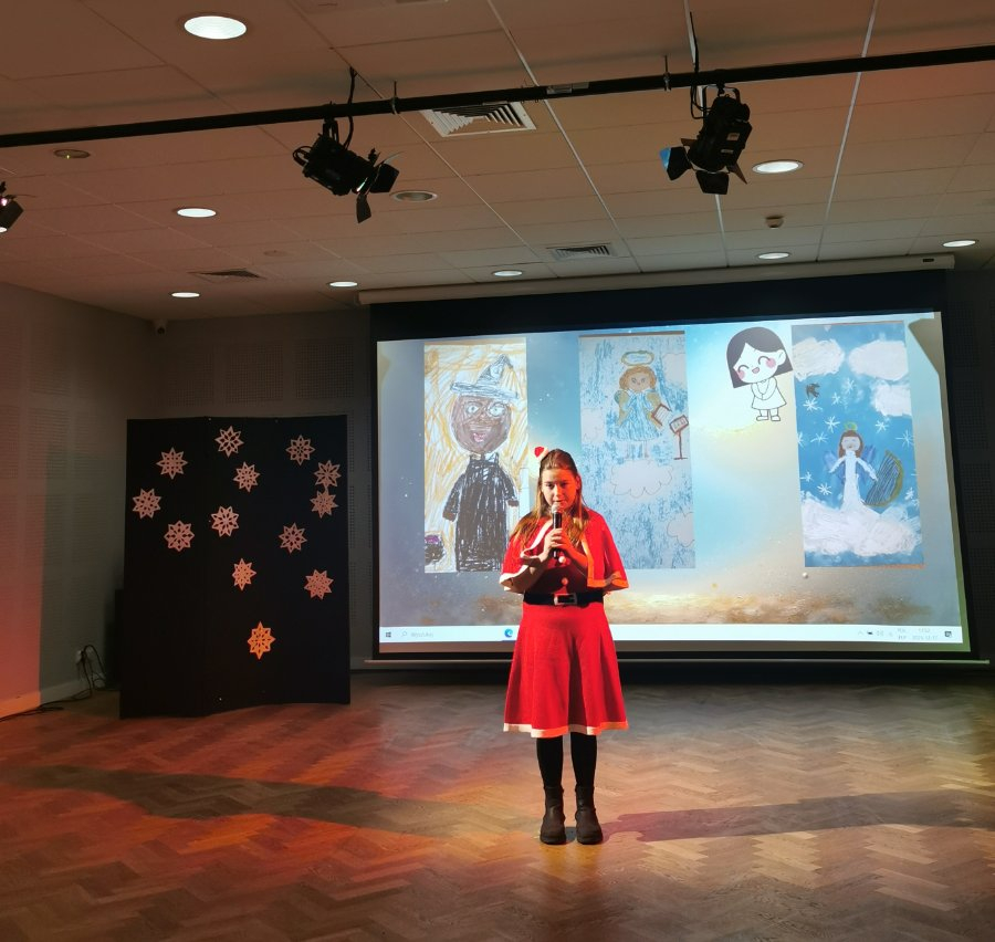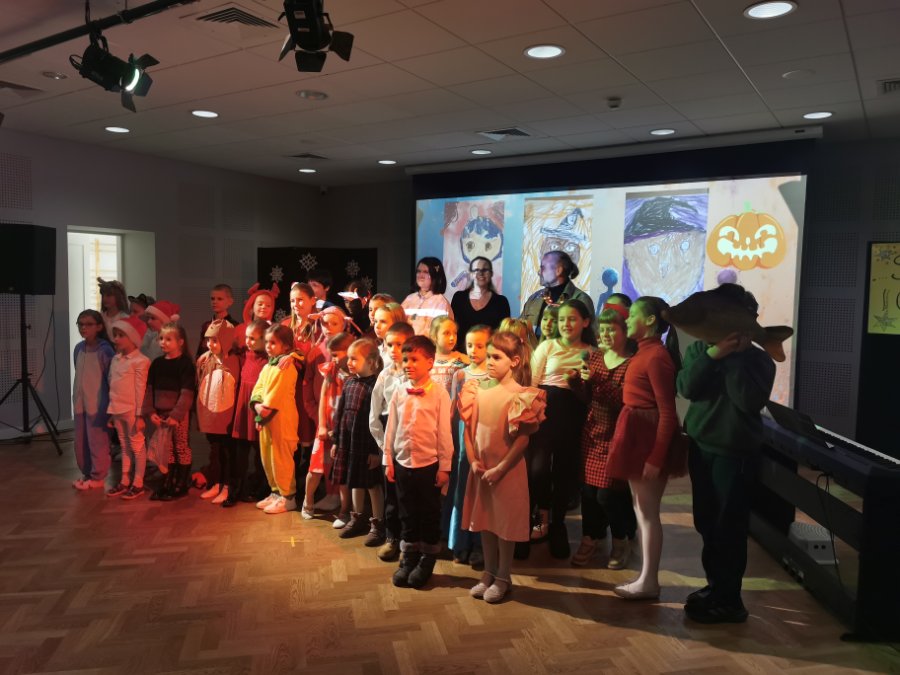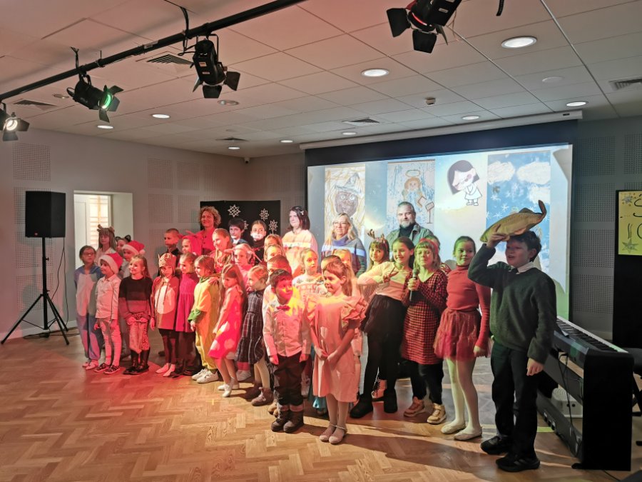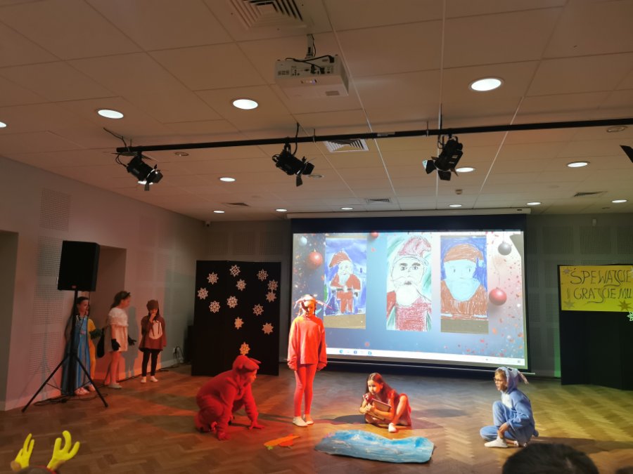 Na scenie wystąpiły dzieci i młodzież z zespołów DICTE, ARLEKIN, AKTIVPLAST oraz Zespołu Pianistów. Wspólnie śpiewaliśmy kolędy tradycyjne oraz gwiazdkowe przeboje – po polsku i po angielsku. Publiczność mogła podziwiać tańce, spektakl teatralny, prace plastyczne oraz wysłuchać pięknej gry na fortepianie.