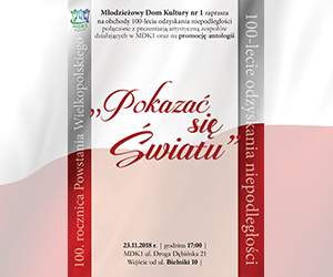 Młodzieżowy Dom Kultury nr 1 zaprasza na obchody 100-lecia odzyskania niepodległości połączone z prezentacją artystyczną zespołów działających w MDK1 oraz na promocję antologii "Pokazać się Światu".