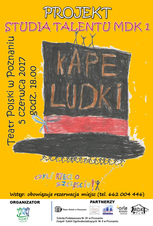 Zapraszamyna projekt-musical "KapeLudki, czyli rzecz o szczęściu"Realizacja: Studio Talentu przy MDK1Współpraca: Teatr Polski, Gimnazjum 26, SP20, DK "Orle Gniazdo", Stowarzyszenie AMICI, MDK2 5 czerwca, godz. 18:00 - Teatr Polski w Poznaniu